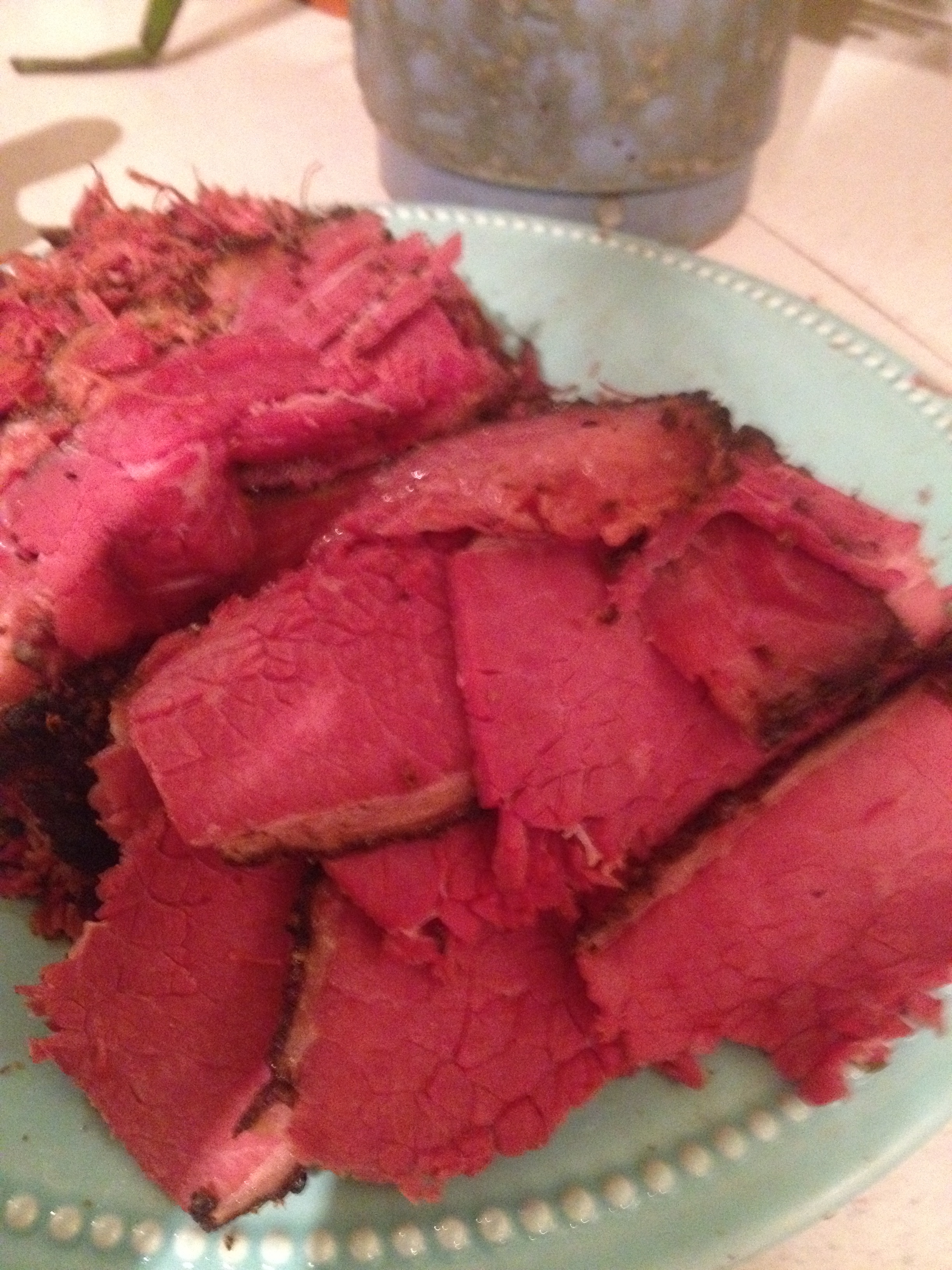 This great exploration was occurring at the height of the E-coli fiasco at XL Meats.  My wife and kids were concerned about this ungainly piece of meat sitting in our refrigerator for about a month.  The meat was not from XL but to their knowledge they had never eaten a piece of meat that had been in our refrigerator so long.  (Note to self don’t waste money buying aged meats for them)  Leftovers more than 3 days old start getting the squinty eyed look around here.  Which means I get some pretty tasty lunches for work.