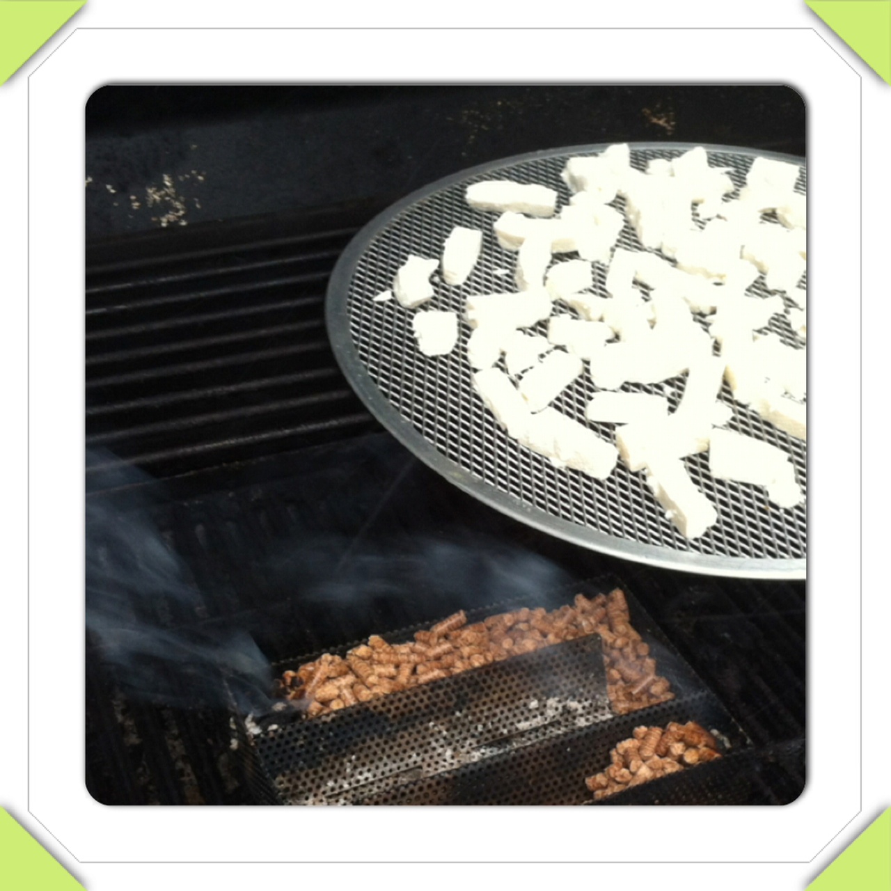 I used my A-maze-n Pellet smoker for this task and used my grill as a convenient enclosure. There was no worries about overheating the cheese on this day as it was -12 deg C.
