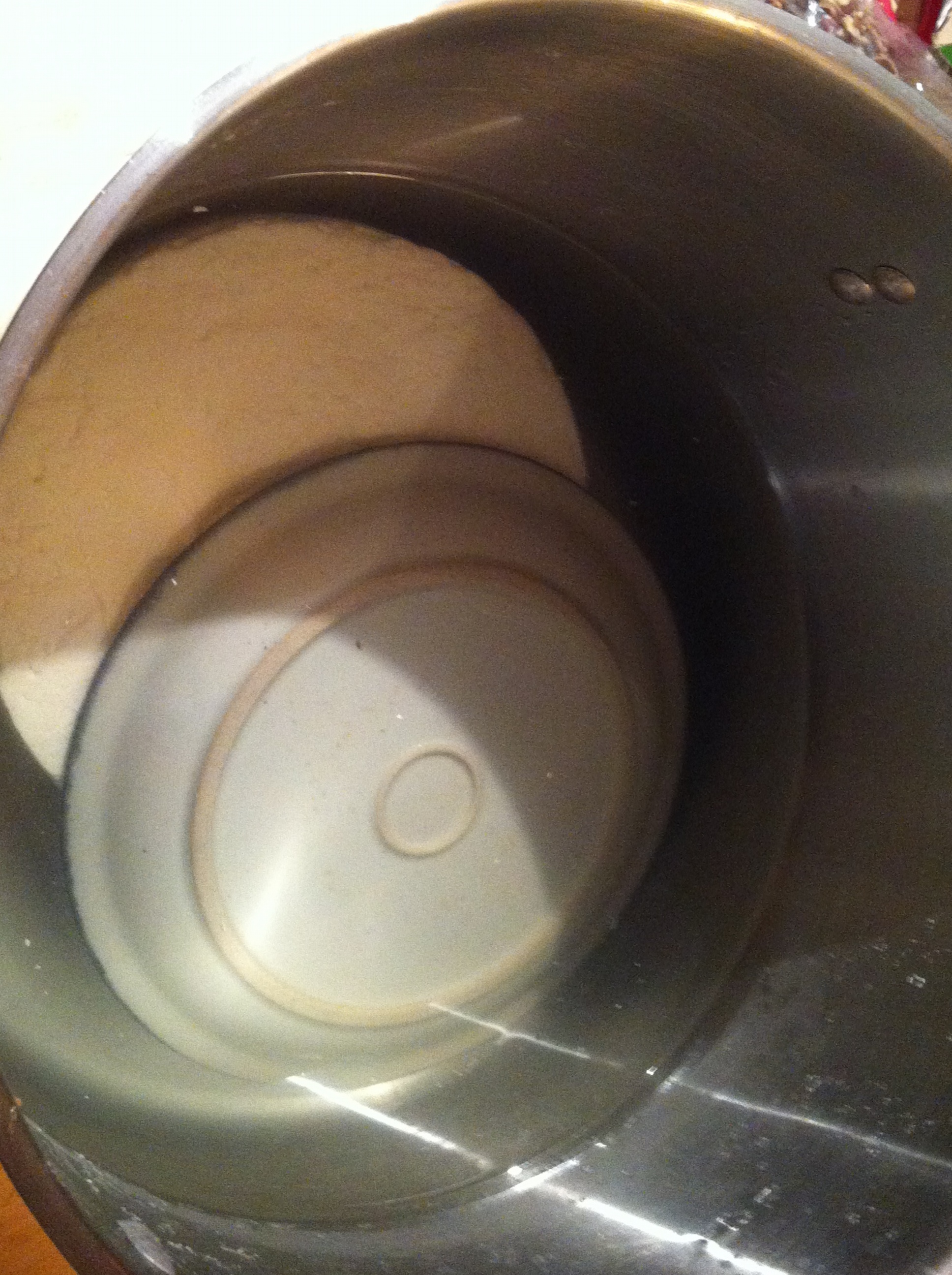 In previous batches I used nested pots for a water bath, which inevitably led to drowning the controls on my stove (it only takes about a quarter of a cup to do that). This time I used the kitchen sink; it worked great. No more nested pot water baths for me!