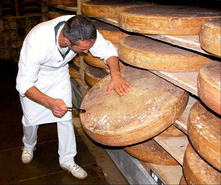 Asiago can be enjoyed at a variety of ages and textures. Young or fresh Asiago is smooth and fresh and is known as Asiago Pressato. Older aged Asiago known as Asiago d’Allevo is crumbly and stronger flavoured similar to Parmesan. A variation, Asiago Pepato has black peppercorns integrated into the curds before pressing. On to the make.